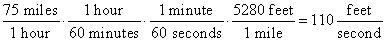 A car traveling at the rate of 75 miles per hour is traveling how many feet per second?