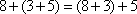 • The associative property of addition states that if a, b, and c are real numbers, . Consider the equations  and . In these equations, 8, 3, 5, , and  are all real numbers.