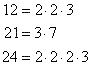Then look for the greatest number of times each factor appears in any of the factorizations. The LCM is 2 · 2 · 2 · 3 · 7 = 168.