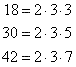 Since both 2 and 3 appear in all three factorizations, the GCF is 2 · 3 = 6.