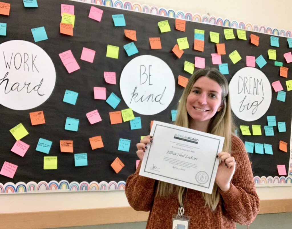 Her favorite part of teaching is staying rooted in her community. “I love that I get to teach in my hometown and give back to the community that raised me.” Jillian explains that she feels inspired by her students’ resilience and creativity. She also enjoys building curriculum with her colleagues. She explains that they create “a diverse and engaging English Language Arts curriculum that reflects a wide range of voices and experiences.” Jillian gets to watch students connect with stories that reflect their lives. “Seeing students connect with what they’re reading… is one of the most rewarding parts of my job.”